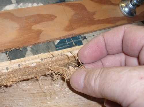 Todos mis agujeros son taladrados, y ahora quiero unir la columna vertebral... Para las juntas y las abrazaderas deben me movido para permitir la sutura.  Mover una abrazadera en un momento y deslice con cuidado la Junta lejos del borde del libro.   Si las páginas se mueven entonces los agujeros que se alinean para coser así que trabajar lenta y cuidadosamente cuando mueve sus abrazaderas y boards. Cuando tomé esta oportunidad para limpiar el crud suelto sobre el lomo del libro.  Viejo seco frazzles de papel y pegamento que rayados fuera de la columna vertebral.