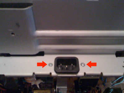 Una vez retirada la tapa, la pantalla de pie y quitar los dos tornillos que sujetan hacia abajo el enchufe (cuadro 2).