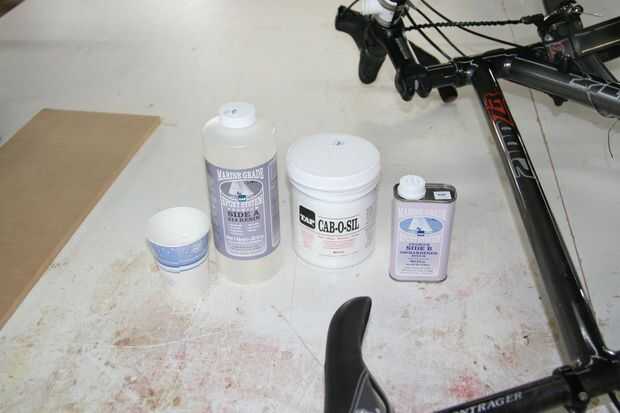 Y este "cab-o-sil", ¿qué es? La etiqueta dice "Sílice ahumado". Una fibery powderous sustancia blanca que es probablemente el infierno en un pulmón. Asegúrese de que usted está usando una máscara antipolvo. Aquí es darle al epoxi cierto cuerpo para que en el agujero se pueden rellenar y quedan. La otra opción habría sido microesferas. Que son estos pequeños, más grandes que el polvo pero no mucho, vidrio hueco burbujas que hacen más o menos lo mismo. La diferencia parece ser que las burbujas producen un sólido mucho más ligero, mientras que la sílice produce algo un poco más fuerte. ¿Compensación adecuada? No sé. Las microesferas de sez de internet, el plástico de la tienda chico sez cab-o-sil, y el precio es el mismo. Ya que estamos hablando de mg aquí, voy por la silicona.