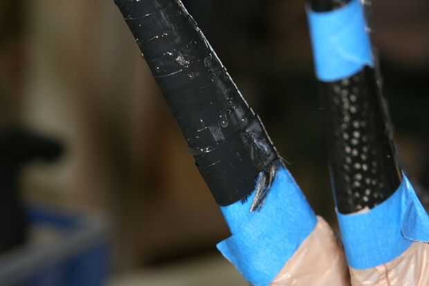 El lazo de cinta azul en el tubo dañado no existe en la ubicación correspondiente del agujero. Así, una vez que se sella hasta tendrás alguna idea donde estaba el daño.