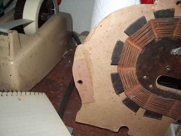 Esta radio originalmente solía algunas encajan alfileres Sujete la parte trasera a la caja, que faltaban en esta radio. Así, I perforado y golpeado ligeramente los orificios originales para aceptar tornillos de máquina, pero antes de poder montar la parte trasera a la caja que tuve que reforzar donde los hoyos originales en el cartón trasero había rasgado a través. Para reforzar éstos, he perforado los agujeros en un cartón de desecho y simplemente había pegado en el interior del panel posterior. De esa manera que ahora se reforzaron los agujeros, pero los parches no se mostraron.