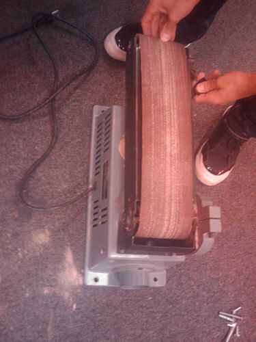 una lijadora manual de chatarra. Estamos apagado en todos artículos para el hogar, incluyendo las herramientas. Yo uso una cuadra de mitre pero nunca es lo suficientemente exacta para que quería una lijadora para obtener una mejor articulación de mit