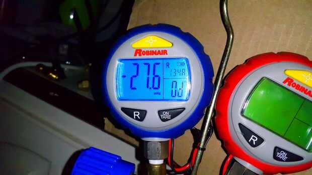 Con mi colector calibrador de conjunto y bomba de vacío enganchado en la válvula instalada, tiró un vacío durante 20 minutos y bloquear la válvula de colector de baja presión y apagado de la bomba de vacío. Lo dejé reposar como 15 minutos viendo de cualquier disminución del vacío. Satisfecho no haya fugas adelantó el próximo paso.
