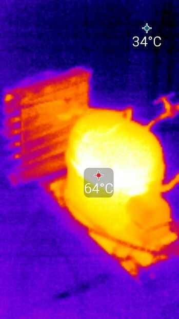 Mi mano cámara térmica muestra una temperatura de 65C, que es muy bueno!