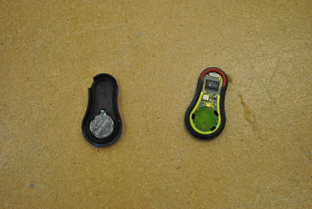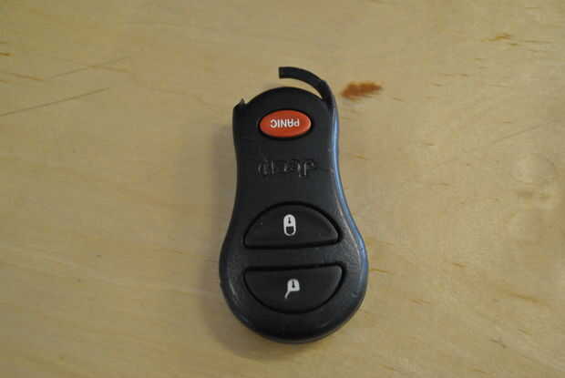 Lo que queda de lo que solía ser el llavero debe ser extirpado. Use la sierra cortar la mayoría de lo que queda. También me aseguré de cortar una pequeña muesca de la parte nueva en. Esto le dará un poco más de fuerza. Corte la muesca es mucho más fácil de hacer con el caso abierto.