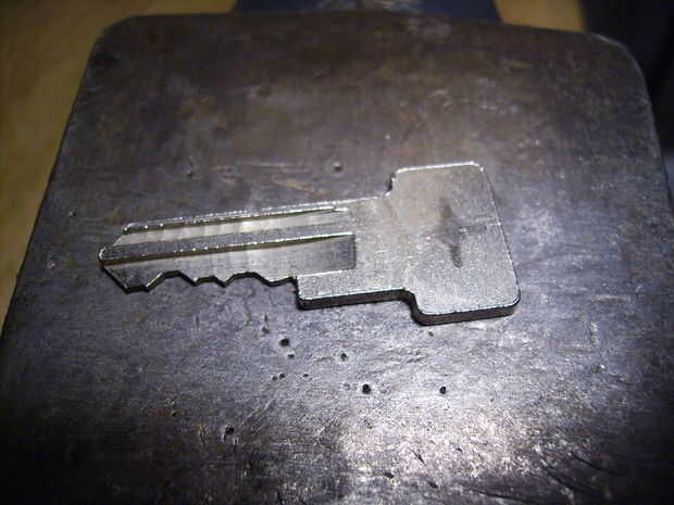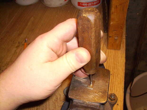 Tenga cuidado con el martillo. Usted no desea conducir el punzón a través de todo el camino y en el yunque porque simplemente te mate el punto (y con un yunque barato como este, te abolla el yunque también). Hay un lugar en este vicio con un agujero para agarrar tubos y cosas, y coloca el punzón sobre así podía martíllelo a través. No, realmente no debería martillo en las mordazas de la prensa, pero lo hice de todos modos.