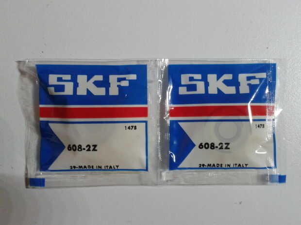 Los rodamientos en este motor miden 8mm interior, 22mm exterior y 7mm de espesor. Esto los hace una 608. Este es un soporte muy común, es el mismo tamaño que se utiliza en patín wheels.so hay muchas disponibles en internet y muy barato. En esta aplicación fueron 608Z donde la Z significa que hay un escudo de metal. En la foto es uno con el escudo de quitar. También se pueden comprar con sellos de agua, que parece mejor, especialmente el dayglo unos, pero los sellos están hechos de plástico. Como el secador se pone muy caliente que es mejor evitar el plástico unos sellado incluso si vienen con una etiqueta engomada fresca.
