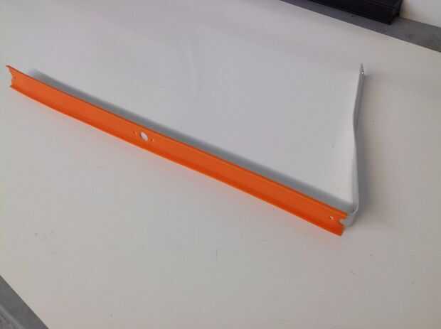 Esto era una actualización que he añadido, solo a ver si podía. Usé una pista de Hot Wheels y dos tiras de aluminio para conectar en la parte superior, así como la prestación de apoyo y forma. El ángulo de salida es fundamental para conseguir monedas para rodar alrededor en los bordes. La pista debe estar alineada con la tangente del borde para el perfil del agujero con una transición suave a la superficie. El montaje permite la rampa ser actualizado para obtener el ángulo correcto a través de ensayo y error. Los niños también quiere utilizarlo para lanzar las canicas.