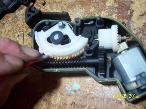 En este paso, baje las clavijas para que sostenga la tapa motor coge la cáscara de outter que se conecta el motor a, puso el motor sobre él, ir a su carro, enchufe en el cable que se adapta a ese conector en la parte de casos, y tratar la cerradura, asegúrese de que gira. Si luego no volver atrás y comprobar su trabajo!