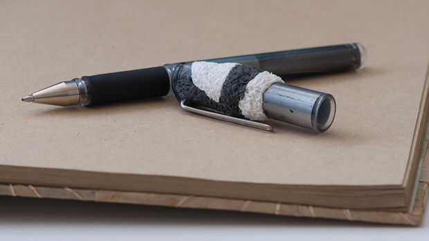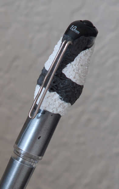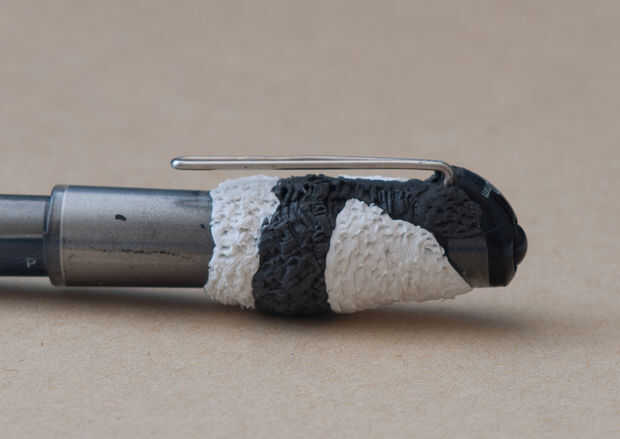 He añadido algunos Sugru blanco para darle la pluma un aspecto más redondeado, texturizado con un cuchillo como lo hice con el negro.