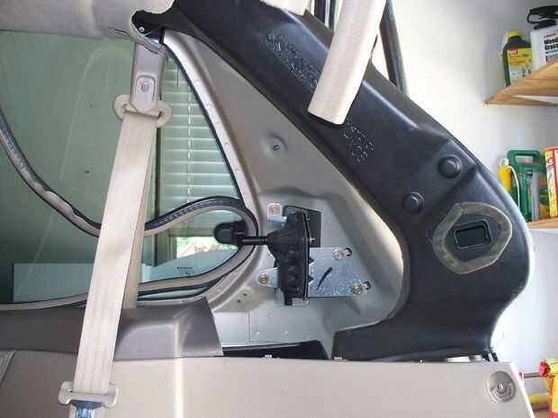 El motor está detrás del trabajo de tubo negro. El trabajo de conducto se lleva a cabo en lugar por un par de clips en expansión. Estos pueden ser removidos quitando el tornillo de plástico en el centro. Los clips pueden entonces ser sacados. No es necesario quitar totalmente el conducto, pero puede ser bastante difícil conseguir claro del motor.