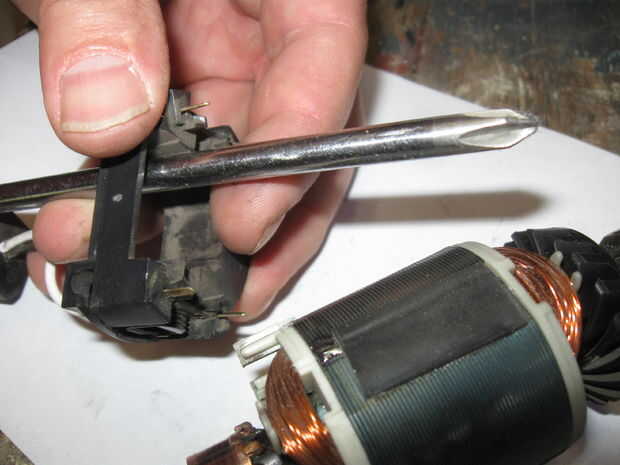 Sospecho que el calor fue causado por un sucio y desgastado conmutador (donde los cepillos en contacto con el rotor), que a su vez causó el pincel fundir en el portador.
