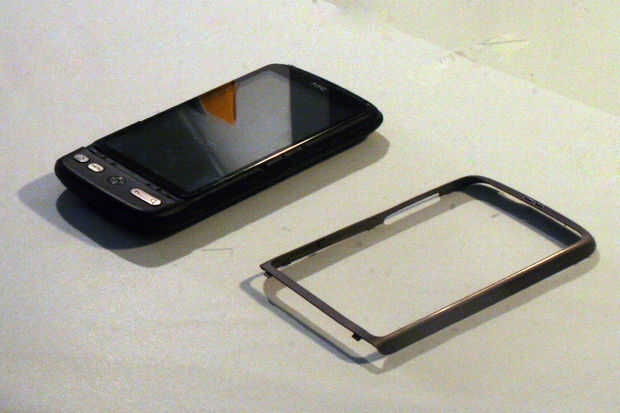 Así que al principio traté de volver a colocar el metal thingy con cinta de doble cara, pero que funcionaba como estaba previsto. Puesto que el metal es un conductor bastante bueno (y que no fue capaz de aislar apropiadamente), apreto siempre de dos puntos de la pantalla al mismo tiempo. Después de tres días estaba tan frustrada que arrancó la estructura de metal mi teléfono. Continué con una tapa dura, pero eso no me hace feliz desde el teléfono mucho más voluminoso.