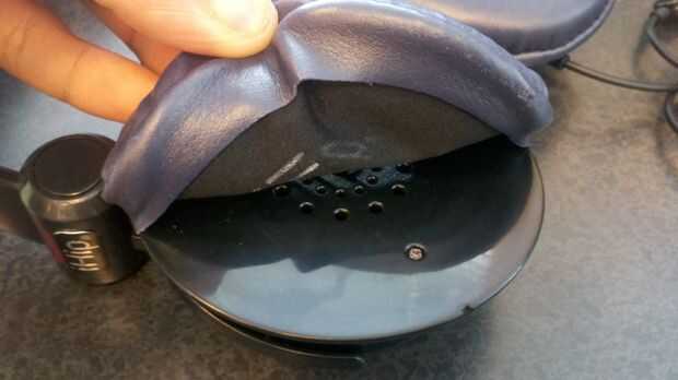empecé tirando hacia atrás el cojín acolchado azul. Simplemente apriete la almohadilla y tire de la almohadilla. Esto me dio acceso a los 3 tornillos de cabeza phillips.