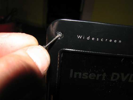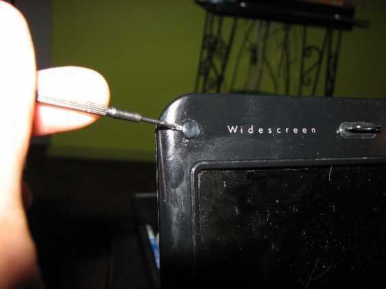 Debe quitar los 3 pequeños de goma de las cubiertas situado en el borde superior de la pantalla del ordenador portátil a la derecha, centro y lado izquierdo usando la mini cabeza plana destornillador. Retire los 3 tornillos situados bajo las cubiertas de goma.