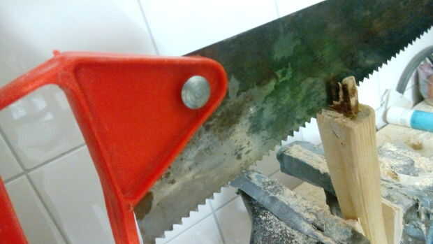 Compré un martillo barato y quería un mejor agarre a la madera desnuda. Pensando en que lindo un taco de pool envuelto lino se siente, que decidí probar envolviendo esta manija en cordón de algodón.Las únicas herramientas que usé eran un cuchillo, un