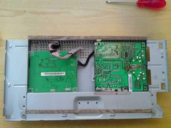 Cuando se desconectaron cables, pude sacar caja con PCBs. localizar la fuente de alimentación es fácil: buscar la Junta soldada de enchufe.