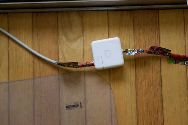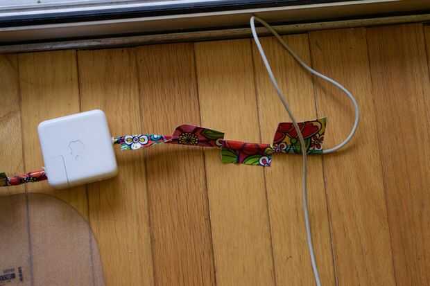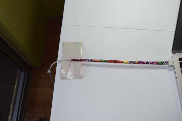 "Marcan" la zona cerca del bloque de alimentación para evitar el lento daño que ocurra (no fue dañado). I paralelo con cinta el cable cerca del conector magnético para reparar un fray de 1 pulgada en el cable. Esto simplemente evita más daños a la médula y ayuda a mantener agua/polvo/suciedad de erosionar la sección deshilachada. Puede aplicar hasta dos vueltas de cinta de conducto paralelo a la cuerda para fortalecer el cable y evitar flexión en una sección de dañados o desgastados. Apliqué dos vueltas de 8 pulgadas de la cinta paralela al cordón de mi y se sienta en el escritorio. Gente le encanta comentar sobre mis flores de hippy!