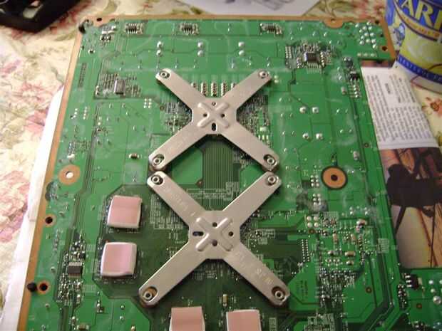 El problema se muestra abajo. (La segunda imagen, amigo) Las dos piezas de metal en forma de X de hijo las tratan de sujetar el disipador a la CPU y la GPU. El problema es que no son lo suficientemente elásticos para hacer el trabajo. El disipador se pueden mover un poquito, de modo la placa madre se puede torcer y deformar por el calor. Esto prohíbe la disipación harmonización del calor, y permite los Mountain se desprendan de sus conexiones. Culpo de la mal diseño a Microsoft por el de haber querido estrenar 360 antes del PlayStation 3. Pero ahora no es el momento para echar la culpa, apuesto a estás a punto de comprarte uno de los reproductores Blu-Ray.