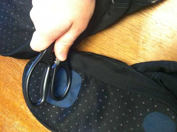 usar el mango de las tijeras para pulir el parche desde el centro hacia afuera, asegurándose de eliminar todas las arrugas y lograr una gran adhesión.