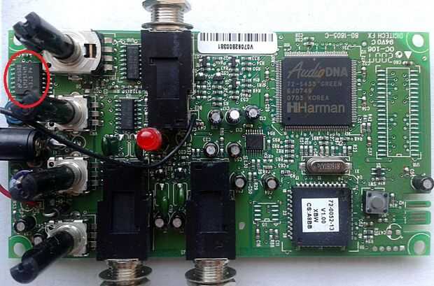 Tenemos que cambiar el regulador de voltaje LM2574M, que proporciona salida de 3.3 voltios. No cambie a LM2574M, que da 5 voltios salida - puede dañar el pedal de efectos del procesador de audio.