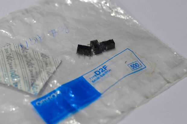 La mayoría de la cara del ratón tienen japonés hecho de conmutadores de la marca omron. He encontrado un pack de 5 interruptores micro omron para solo 5$ incluyendo el envío en ebay. Enlace