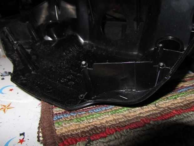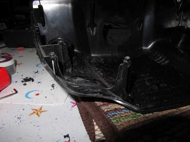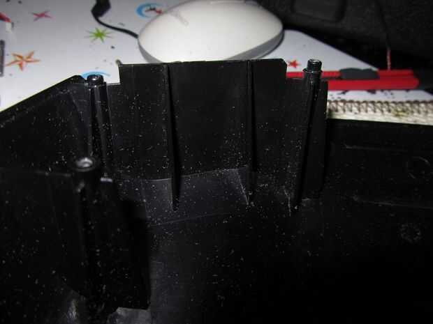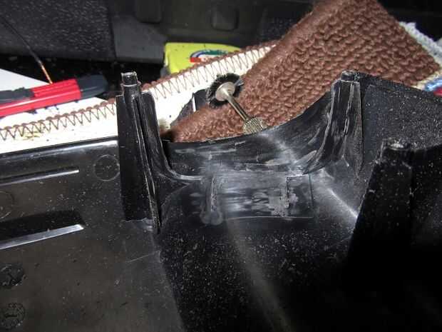 Toma otra vez su Dremel y moler el plástico, mientras que teniendo cuidado de no dañar los tubos donde se fijan los tornillos.