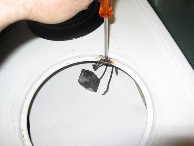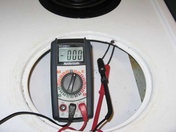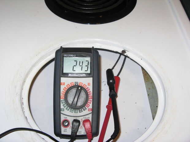Quitar el elemento, el bote y desconecte el elemento del agujero de la maceta y volver a colocar el tornillo para no perderlo, entonces ponga su medidor multi para el valor máximo de voltaje de CA antes de conectar el medidor multi a los extremos de los cables del elemento y enchufe la estufa.
