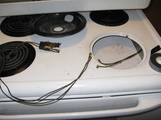 Hay dos cables blancos y dos cables de color marrón o negros oscuros atan que van desde el control del elemento detrás y debajo de la estufa. Los cables blancos son el corta cables (cables toma posterior), y los cables negros o marrón oscuros son los conductores largos (cables zócalo frontal).