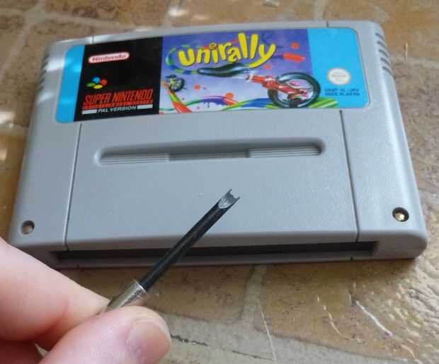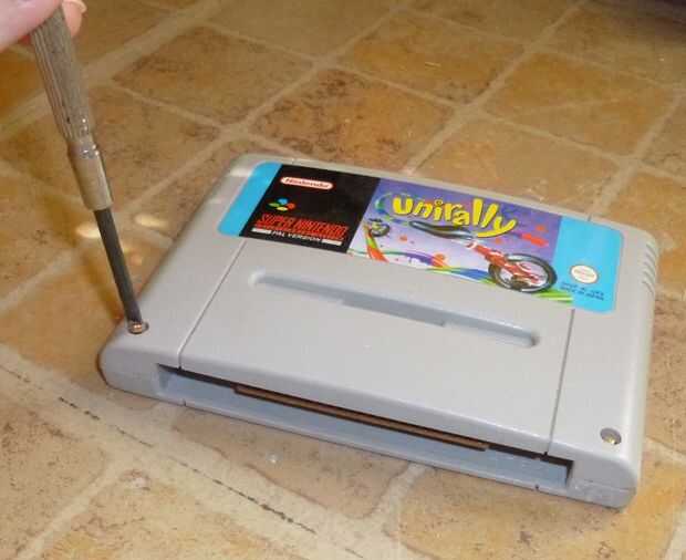 Primer paso por supuesto es abrir el cartucho de juego, estos están siempre en manos de tornillos, tornillos a veces normales a veces con tornillos especiales. Es por eso que elegí un cartucho de Nintendo para esta demostración utiliza tornillos no estándar.