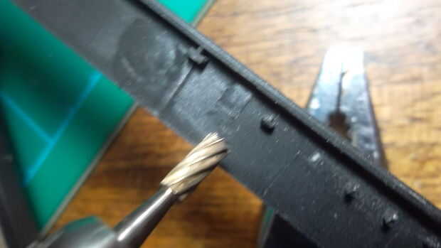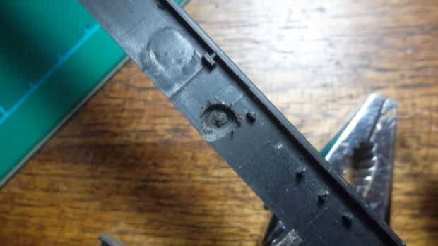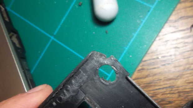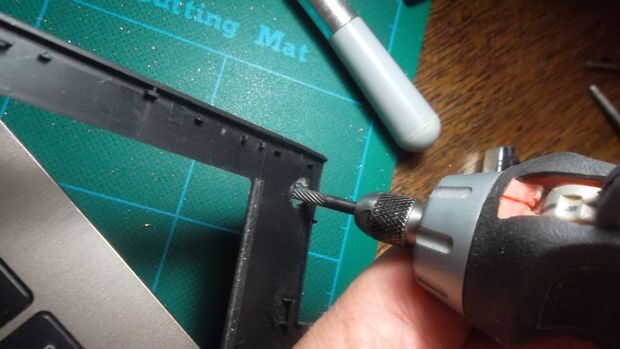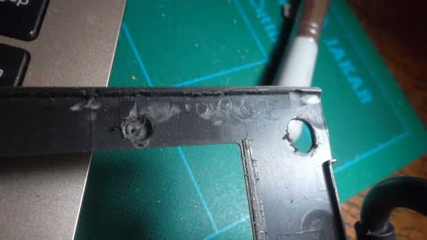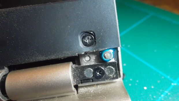 cuando los tornillos que sujetan la bisagra a la pantalla de mi laptop dio para arriba el fantasma, que necesitaba una solución rápida. Una pequeña tachuela actuando como un remache hace el truco.Paso 1: Quitar bisel No entraré en demasiados detalles
