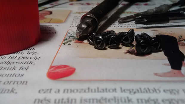 Para desunir los tornillos se necesita una herramienta especial para desatornillar los 6 tornillos que hice de cabeza phillips, pulido por sus bordes con mi Dremel hasta que conseguí una herramienta agradable forma triangular que encaja en las cabezas de los tornillos especiales desagradables.