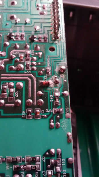 Como se aprecia en el cuadro 3, encontré rastros de algún tipo de una corrosión en varios puntos de soldaduras y de la Junta. Sin saber exactamente las razones de este tipo de corrosión, tomaría una conjetura salvaje que la razón de por qué ocurrió el error microrruptor también podría ser consecuencia de algún tipo de esta corrosión en los contactos metálicos del interruptor. Humedad tal vez condensational, no sé.