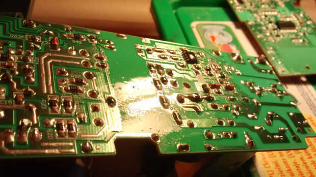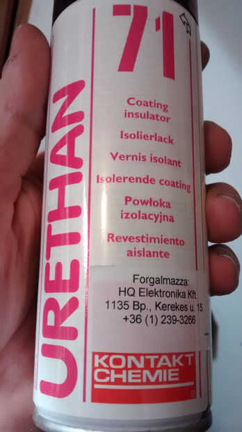 Después de soldar, limpié ambos tableros con un diluyente y aplica una capa de aislante de la capa de Urethan 71 para proteger el circuito de la corrosión posterior.