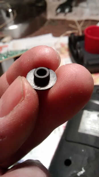 Vuelva con cuidado el panel en su lugar, en la parte superior de la caja. Tenga cuidado y no te olvides de insertar a ese separador plástico redondo negro derecha en la hoja superior del botón de modo antes de que vuelva a colocar la Junta en su lugar. Sin ese espaciador plástico, usted no puede llegar su nuevo micro al presionar el botón Mode, y no funcionará. (Me preguntan cómo sé... :))