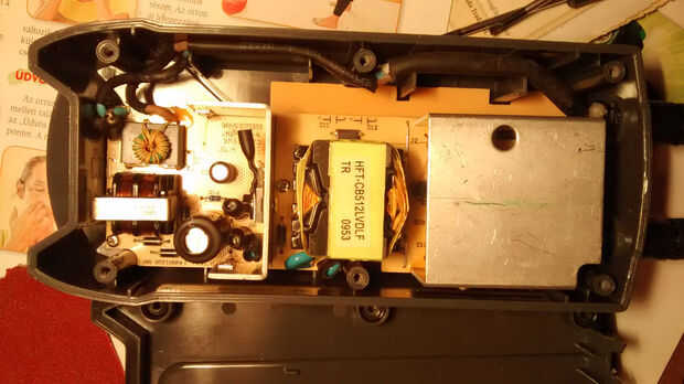 Usted tendrá que jugar en el tablero a su lugar. Tener cuidado acerca de la alineación correcta, la junta mayor debe tocar los agujeros de los 2 tornillos y el cable de alto voltaje (lado derecho del caso) se debe alinear correctamente en sus guías como lo fue antes.