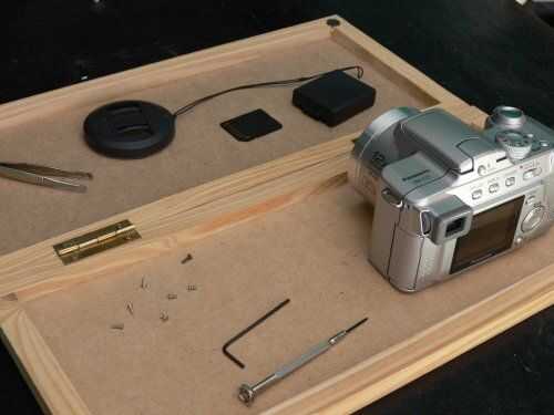 La primera fijación quitar es un perno allen en el flash. Esto, junto con seis tornillos distribuidos alrededor de la costura principal, asegura la parte de atrás al frente de la cámara.