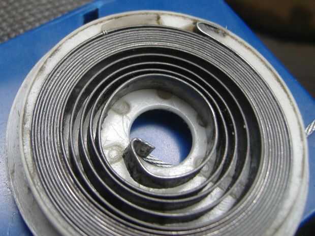 Tienes que tirar el disco fuera de la cáscara. La manera más segura de extraer el disco debe girar en el "mal" (hacia arriba) de la dirección, al final de la primavera debe deslizarse fuera de la ranura en el tubo central (no que lo bueno lo hará con la curva de la fábrica) le sugiero hacerlo con aluminio tira-lo por la mitad para evitar que al final va en el centro. Si se hace sin y se desliza hacia el centro, empuje hacia fuera y vuelva a intentarlo o alicate para sacar el disco al final. Solo tirando el disco puede soltar el muelle, pero si no es así, trate de no forzar hacia fuera ya que dobla al final tienes que reformarlo y usted no será capaz de hacer como buen trabajo (mi revisión hizo la última curva un poco más y se frota en la parte que va por la mitad).
