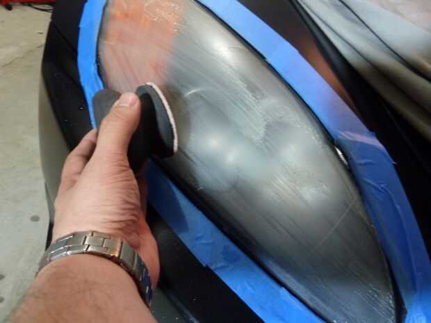Usando el teclado de grano 1000 en el bloque de lijado, mojar la lija y empezar a lijar de lado a lado. Asegúrese de que se baje de la linterna. Utilice una toalla de papel cuando sea necesario para limpiar el lío para ver lo que has hecho. Una vez que han lijado lo suficiente, utilizar el limpiacristales para eliminar los residuos.