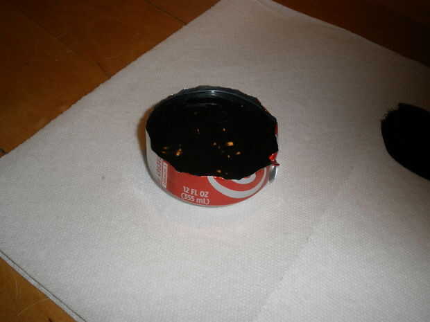 Corte el fondo de una lata de coca cola para mi envase, puesto que era práctico y desechables. Había algunas cosas de jarabe cobarde en el fondo que era un poco difícil de limpiar, pero agua caliente + lavado + alcohol + más agua caliente = bastante limpio.