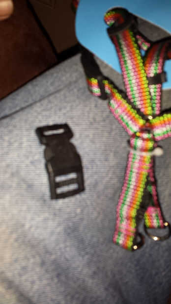 Así que después de buscar un reemplazo plástico botón 1 hebilla y no podría encontrar uno en cualquier tiendas locales terminaron en el Dollar Tree y conseguí 2 arneses de perro mediano y cortar las hebillas plástico de ellos.