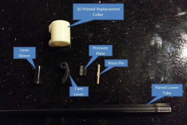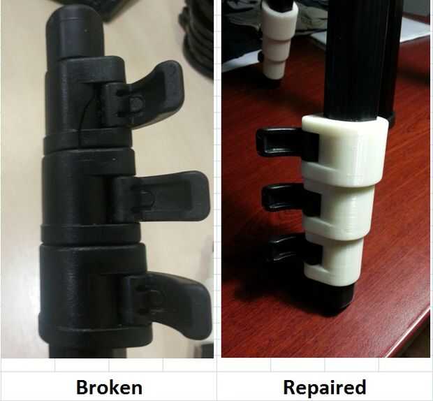 Usted puede encontrar mis archivos de stl 3D en Thingiverse.com bajo el título "Trípode Cam-Lock Repair" o bajo mi nombre de usuario de "frubino".