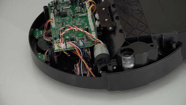 El motor del cepillo se conecta a la placa principal delante de la rueda izquierda de Bob. Se asienta en dos pequeños soportes cuadrados.