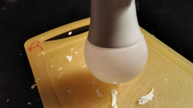 Por primera bombilla que lo arreglado de esta manera que no trabajó tan bien para que el vidrio no iba en profundidad suficiente y utilicé algunos Sugru (silicio juega doe) para unir las 2 partes. Para el segundo bulbo que me fijo era necesario en absoluto. No puede decir todavía si Sugru es una buena opción a largo plazo, pero por ahora (1 semana) funciona.