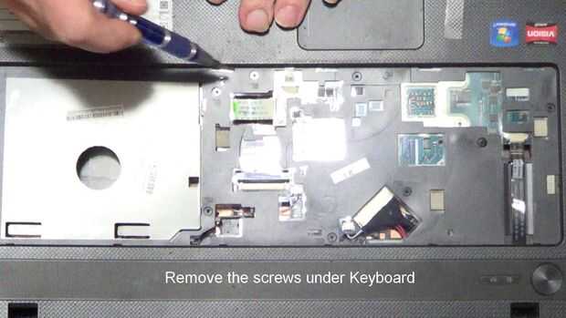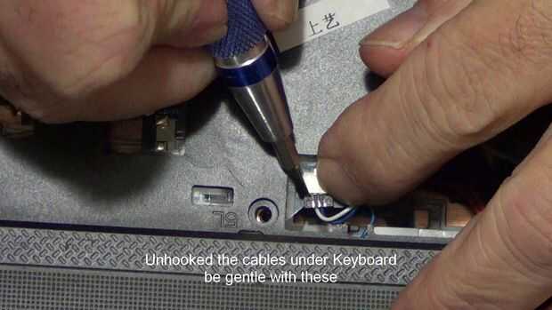 Ahora quita el teclado y los tornillos, los cables por debajo de ella. Ser suave con los cables.