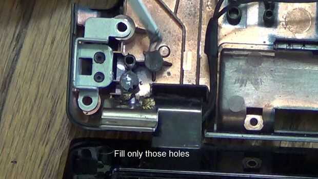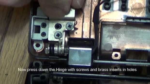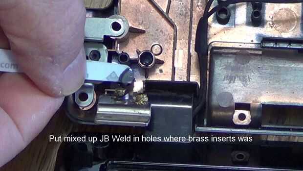Recientemente he adquirido un ordenador portátil de mi hija que es necesario reparar algunos a las bisagras. El portátil ya no cerraría bien porque la bisagra había roto con la tapa del ordenador portátil. Los insertos de latón sacó y rompieron el po
