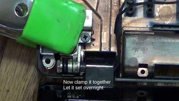 Reparar problema de bisagra de portátil con JB Weld (5 / 7 paso)