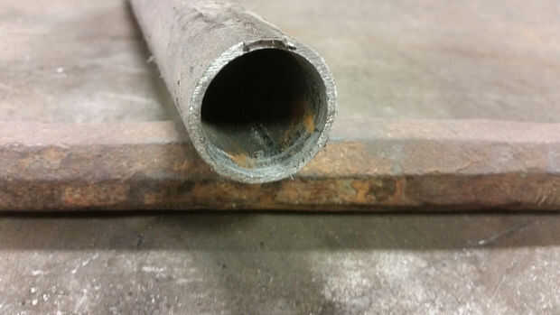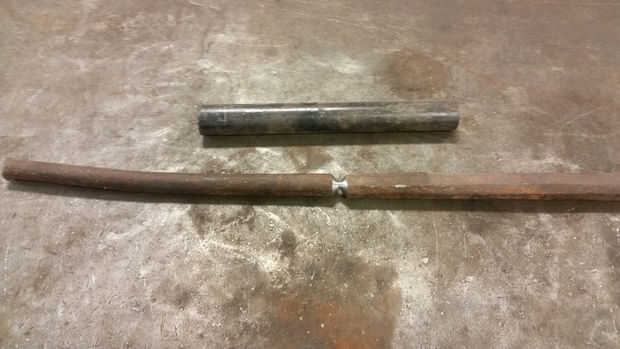Pensar como un soldador me hace agregar metal a las cosas, para la fuerza. Así, el plan inicial era biselar la barra en el descanso, soldar juntos y deslice un trozo de tubo sobre ella como una férula. Pero tener casi dos años de habitar sobre el tema siempre es algo malo para mí. He añadido pasos adicionales, que sonaban muy simple en el momento, pero terminaron siendo un poco de un dolor más tarde. Así que el nuevo plan era reparar la barra y deslice el tubo sobre al igual que antes. Pero agregué el paso adicional de reducción de la tubería hasta el partido de la forma cónica de la barra de palanca para la fuerza agregada.