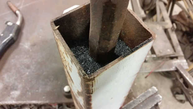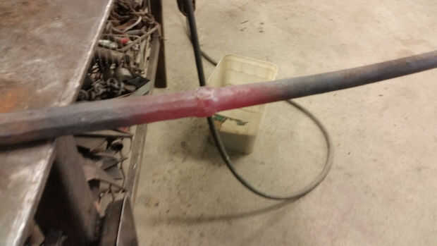 Así que necesitaba volver a la estructura molecular a algo más parecido a su estado natal. Que significa tratamiento térmico. Que saber un poco sobre los procesos involucrados, pero estoy por ninguna medida un experto del tema. Mientras que la soldadura era todavía caliente apliqué calor hasta que la soldadura y unas pocas pulgadas a cada lado de él eran rojo brillante. Debería haber sido en algún lugar en el barrio de 1100 a 1400 grados Fahrenheit. Después refrescado en arena.