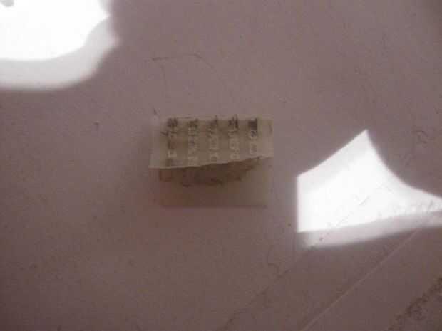 Había una pieza plástica de la cinta vieja. Me llevó aparte y notó que la pieza de plástico era todavía pegajosa.